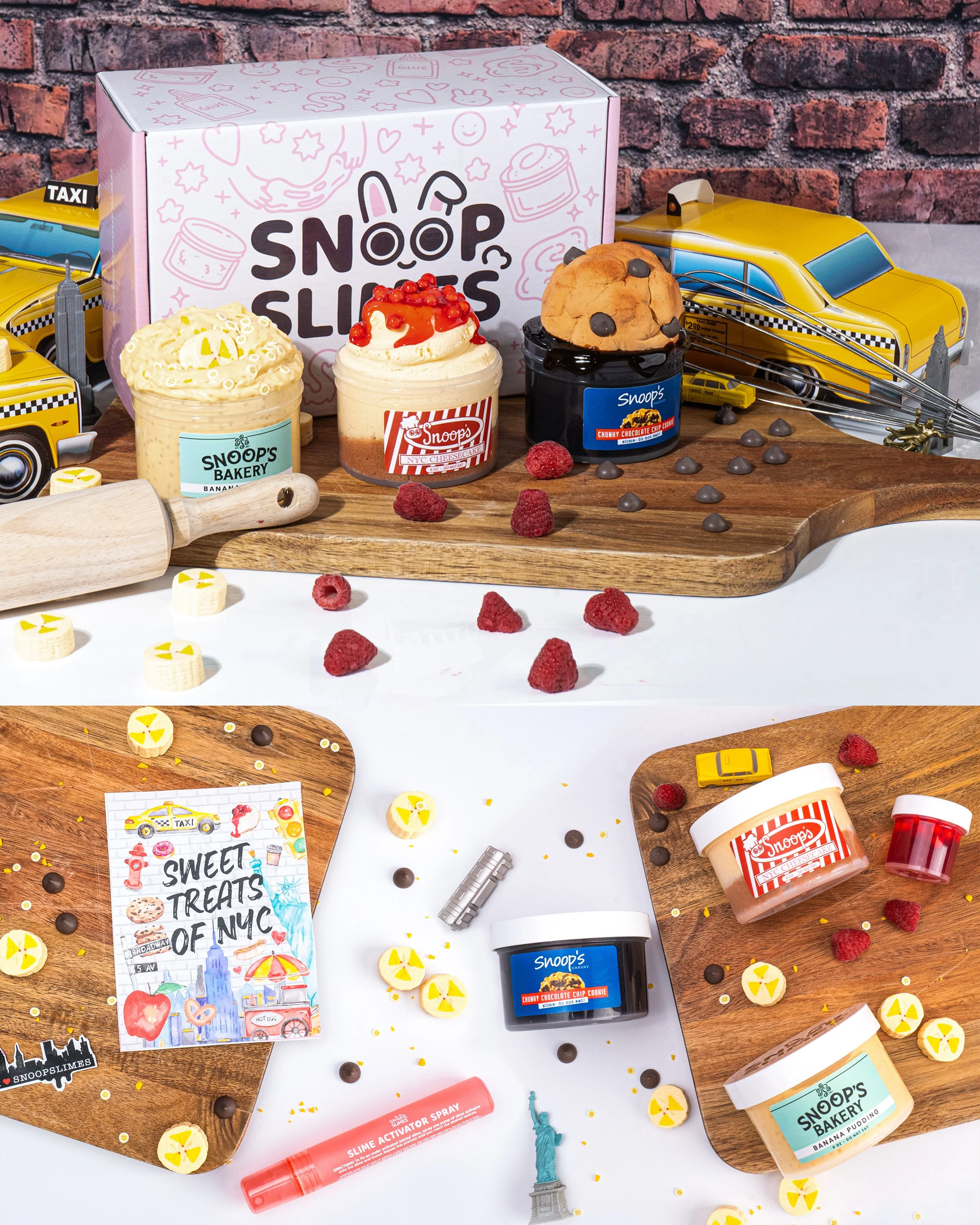 Every month, Snoopslimes releases a themed subscription box featuring three exclusive slimes and collectible items. I oversee video production and product photography for each launch.